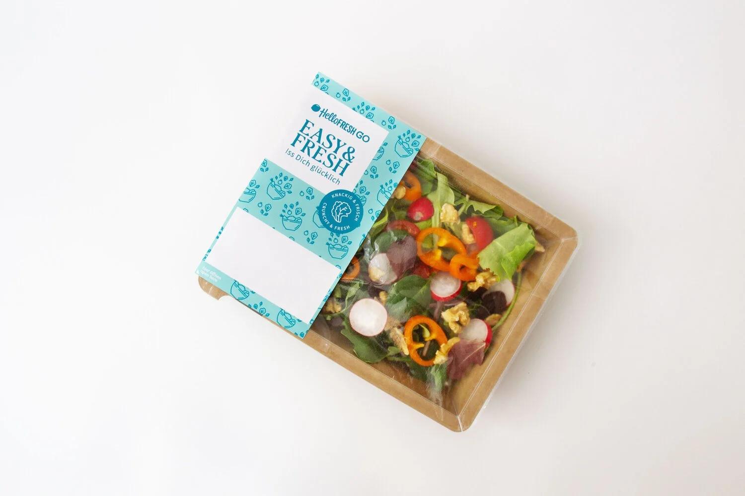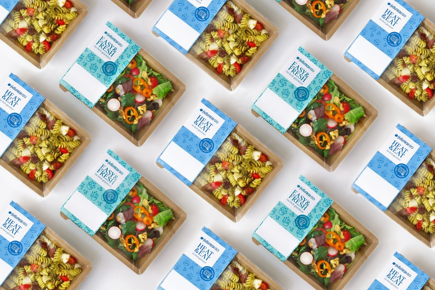Label design including joyful patterns and icons for 3 different kinds of ready meals.
